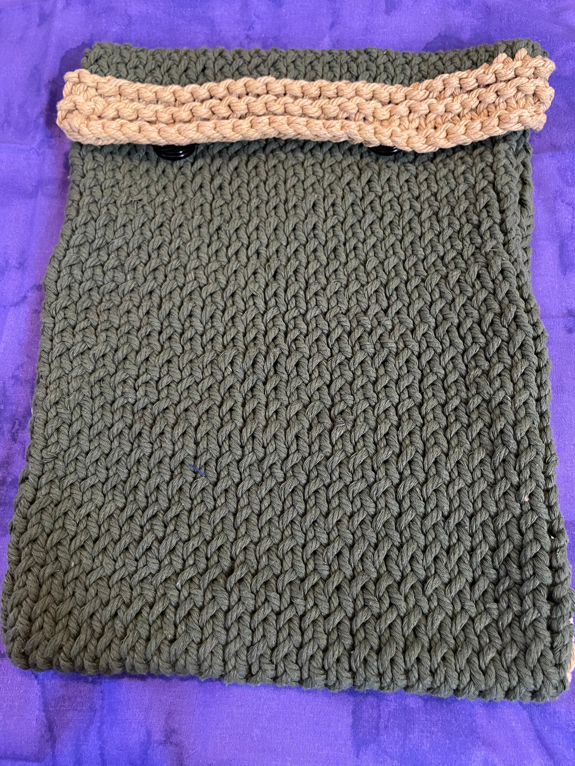 This rope yarn has a great stretch and no lint. It holds most laptops and keeps dust away when not in use. Not to be used for protection if dropped. It’s great to keep in your carrying case. Or in your desk. Two strong snaps keep it closed. Free shipping.